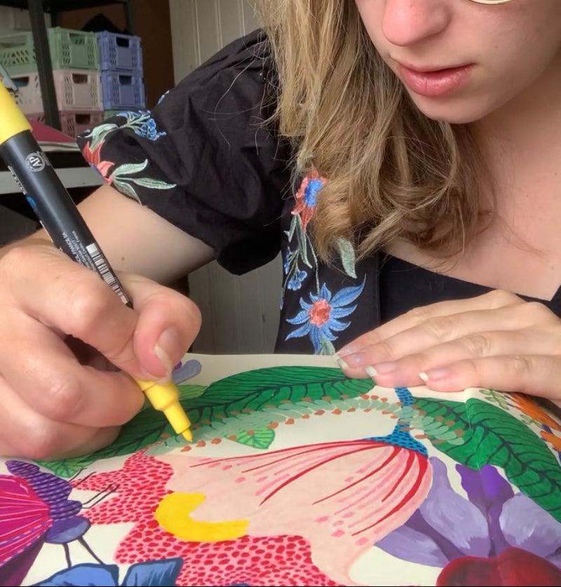 My love for printed textiles first came from my artistic family. I later graduated with a degree in Textile Design and worked with designers in the fashion industry. I adore bright tropical colours inspired by jungle animals and their wildlife. All my products start with hand-drawn and painted inspiration, and my favourite medium to use is gouache paint! Of course, digital artwork has become very popular so many of my designs are created using the Adobe Software.